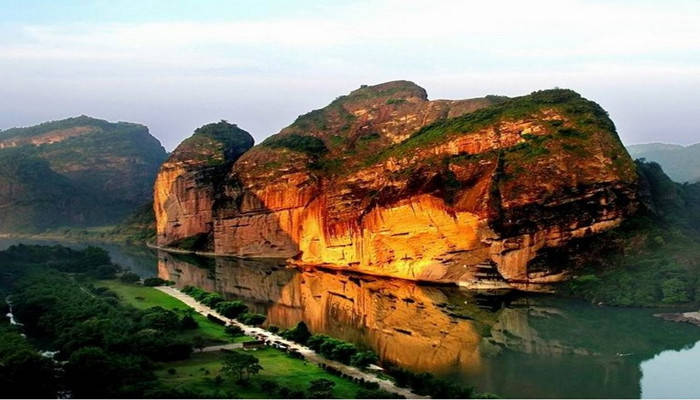 “中国丹霞”申报世界自然遗产成功,被正式列入《世界遗产名录》,包含的6个申报点分别是福建泰宁、湖南莨山、广东丹霞山、江西龙虎山(包括龟峰)、浙江江郎山、 贵州赤水。至此,中国的世界遗产地数量已增加到40个。九江旅行社 http://www.ailushan.com龙虎山位于江西省鹰潭市郊西南20公里处。据说东汉中叶时张天师在此炼丹,“丹成而龙虎现,山因得名”,龙虎山因而也成为中国道教发祥地。龙 虎山景区有99峰、24岩、108个景物,景观面积达200平方公里左右,源远流长的道教文化、独具特色的碧水丹山和规模宏大的崖墓群构成了龙虎山风景旅 游区自然景观和人文景观的“三绝”。龙虎山由红色砂砾岩构成,形成了赤壁丹崖的“丹霞地貌”,福建的武夷山和广东的丹霞山也属这种地貌。明净秀美的泸溪河 从山中流过,如一条玉带由南向北把上清宫、龙虎山、仙水岩等旅游景点串连在一线上,从上清古镇乘竹筏顺泸溪河而下的20里山水景色宛若仙境,令人流连忘 返。龙虎山确有龙山和虎山。形似龙与虎。但本志所记述的不仅仅指龙山虎山,也不是历史上贵溪县所属的龙虎山范围。